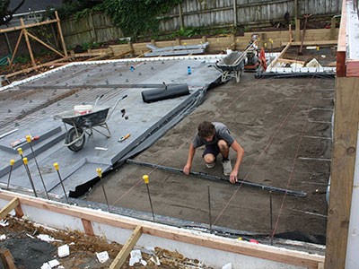 Литое основание равномерно распределит нагрузку на почву, будет компенсировать подвижки грунта, защищая таким образом дом от трещин, деформаций, перекашивания.