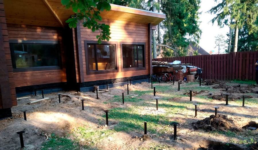 Свайный фундамент применяют при строительстве открытых летних либо закрытых веранд, террас с небольшими ограждениями по периметру.